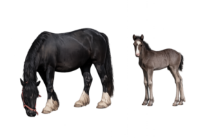 Important : si l’un des parents est gris, le poulain naît noir mais sa robe peut grisonner avec le temps