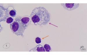 | Lymphocytes (photo 1 - flèche orange) | Présents en proportion modérée |