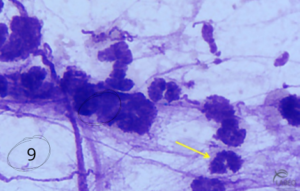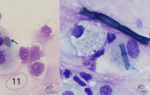 Ainsi, la présence d’éléments fongiques au LT doit être interprétée avec prudence et toujours replacée dans le contexte clinique, cytologique et, si nécessaire, complétée par un lavage broncho-alvéolaire (LBA), plus représentatif du compartiment alvéolaire et de la pathologie pulmonaire profonde